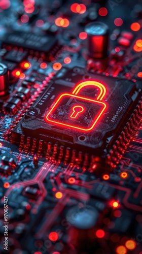 Cyber security and data protection on internet. virtual lock shield, secure access, encrypted connection. Password protected system and storage. Cybersecurity technology red background
