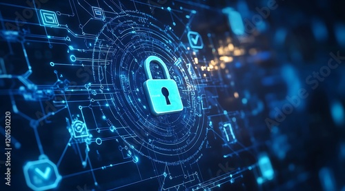 Cyber security and privacy concepts to protect data. Digital padlock icon.