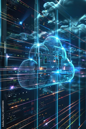 Cyber security cloud storage side view securing cloud data cybernetic tone Complementary Color Scheme