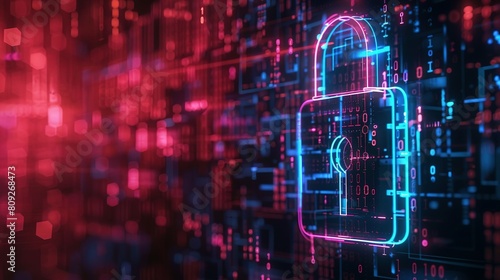 Cyber security concept. digital padlock on abstract cyber security with binary code