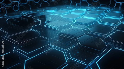 Cyber security concept with closed padlock on hexagons background 3D rendering.generative Ai