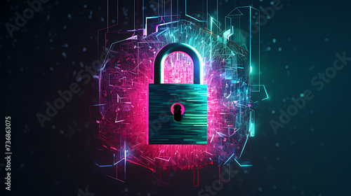 Cyber security, data protection, cyber attack concept on blue background