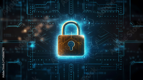 Cyber security, data protection, cyber attack concept on blue background