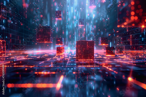 cyber security futuristic, dynamic data stream digital binary big data, and blockchain transactions