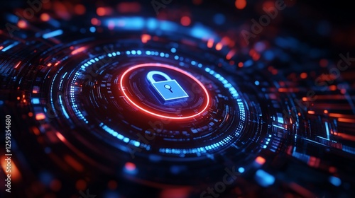 Cyber security lock digital interface glowing