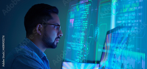Cyber security network. Data protection concept. Man using VR with digital program on internet technology networking with cloud computing and data encryption, cybersecurity