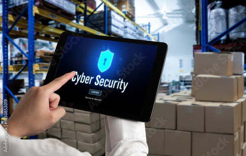 Cyber security system on computer screen protect private information snugly from hacker and cyber attack