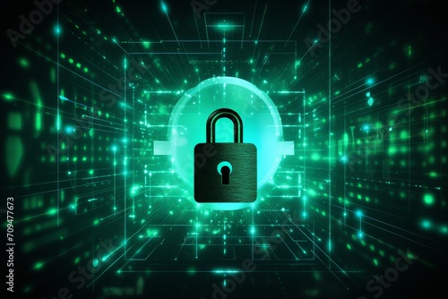 Cyber security theme with padlock and data. Cyberspace antivirus concept