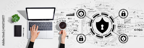 Cyber security theme with person using laptop computer