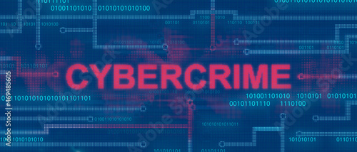 Cybercrime illuminated in red on a LED panel, framed by conductor paths and digital numbers. 3D illustration