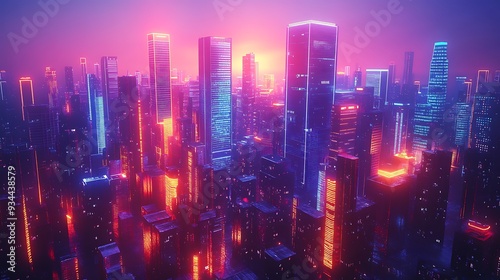 Cyberpunk Cityscape with Neon Lights and Skyscrapers