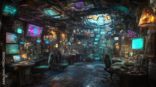 Cyberpunk Tech Room: A Futuristic Digital Haven