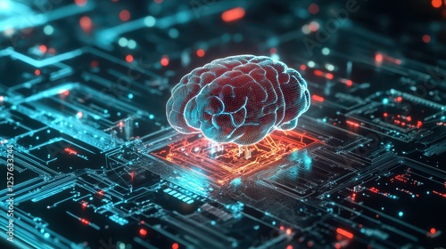 Cyberpunkinspired artificial intelligence, deep learning algorithms glowing in digital space
