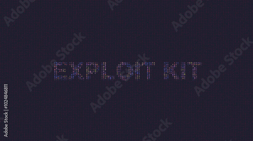 Cybersecurity concept exploit kit on foreground screen, ASCII style in a code development editor. Vulnerability and attack on colored code editor. Text in English, English text