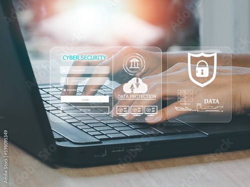 cybersecurity concept, user privacy security and encryption, secure internet access Future technology and cybernetics, screen padlock.
