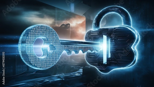 cybersecurity experts blockchain Key Formed from Binary Code Goes Into an Abstract Lock Background