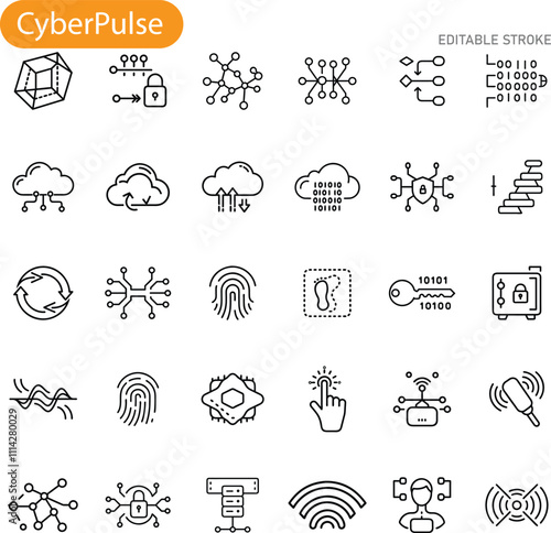 Cybersecurity Icons Network, Cloud, Data, Privacy, and Protection