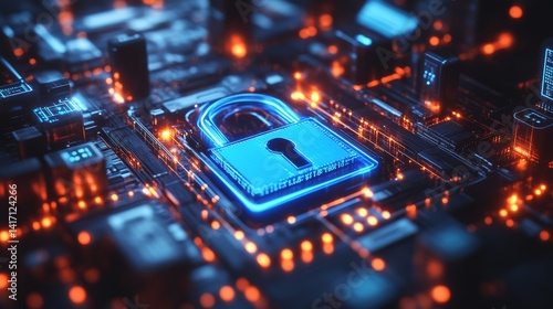 Cybersecurity innovations digital landscape graphic design virtual environment close-up viewpoint