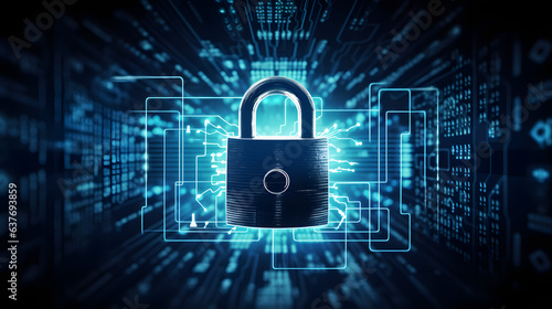 Cybersecurity, lock, circuit board background