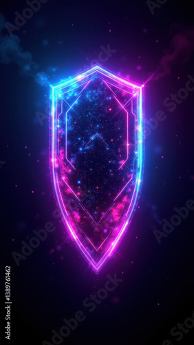Cybersecurity logo with glowing shield and digital stars.