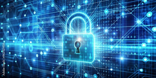 Cybersecurity Network with Glowing Padlock, Abstract, Data, Technology, Security, Network, Digital
