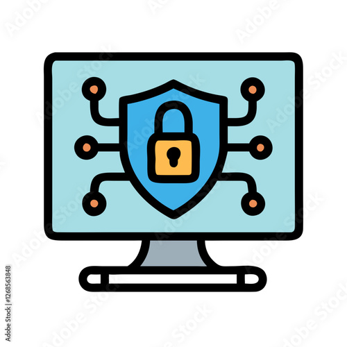 Cybersecurity Shield Icon Vector - Retro Design for Endpoint Security Analytics.