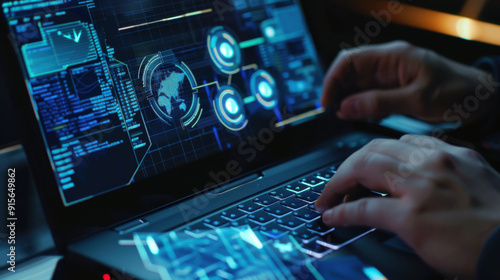 Cybersecurity software scanning a laptop for threats