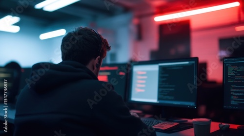 Cybersecurity training session urban office digital learning high-tech environment focused perspective
