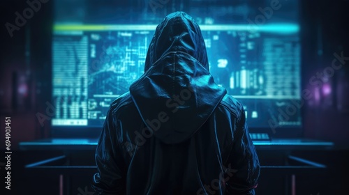 Cybersecurity Vigilance: Hacker Silhouette Reflects Digital Threats