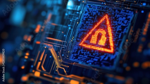 Cybersecurity vulnerability warning sign with circuit board background