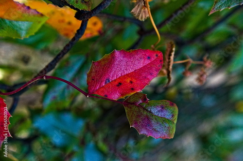 Czerwony listek ostrokrzewu.