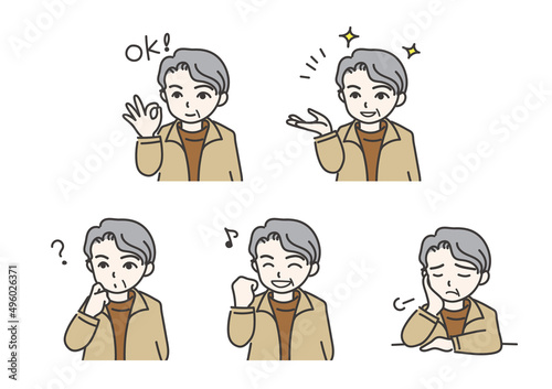 様々な表情を見せる男性のイラストセット_D01【カラー/カジュアル】
