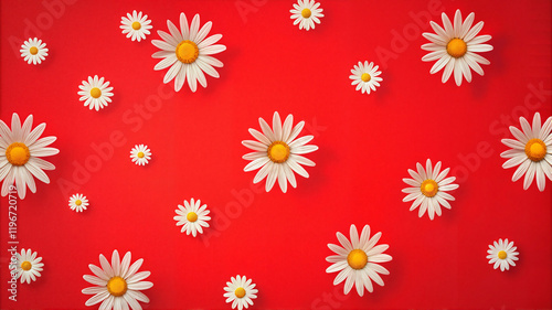 Daisy pattern on red background