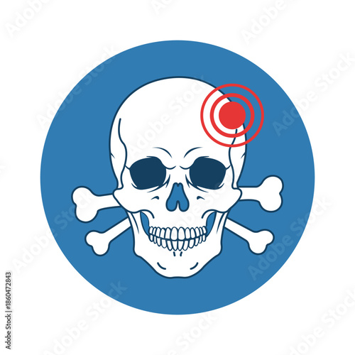 Danger Signal: A stark symbol of mortality and caution. the skull and crossbones is a clear warning sign, signifying peril and hazard, with a targeted injury