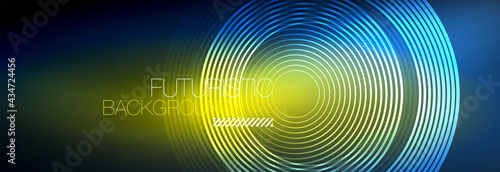 Dark abstract background with glowing neon circles. Trendy layout template for business or technology presentation, internet poster or web brochure cover, wallpaper
