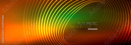 Dark abstract background with glowing neon circles. Trendy layout template for business or technology presentation, internet poster or web brochure cover, wallpaper