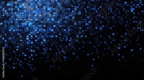 Dark background with blue pixel pattern. Vector illustration of abstract bg with geometric square elements grid. digital backdrop with dissolve rectangle dot particle mosaic gradient texture.