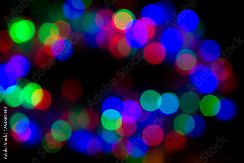 dark background with glowing multicolored lights in defocus, bokeh