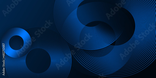 Dark blue abstract background with blue gradient geometric shape..Modern shiny blue circle lines pattern. Minimal geometric design. Futuristic concept