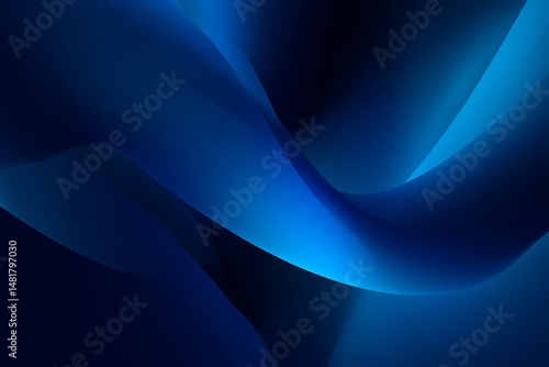 Dark blue abstract background with soft geometric flow and light and shadow.