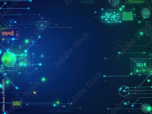 Dark blue background with circuit design and green light emitting from central point
