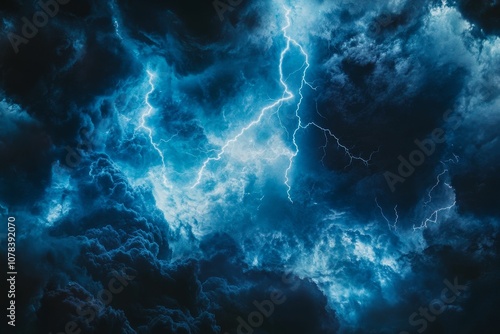 Dark blue clouds with white lightning.