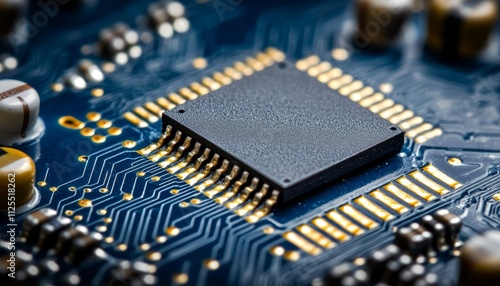 Dark blue technology background featuring a detailed circuit board design for modern applications