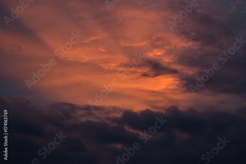 dark clouds with sunset lighting