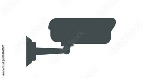 Dark Gray Security Camera Silhouette with Mounting Bracket on White Background.