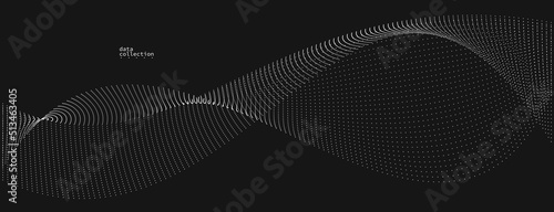 Dark grey airy particles flow vector design, abstract background with wave of flowing dots array, digital futuristic illustration, nano technology theme.