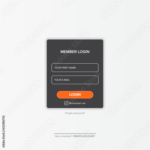 Dark grey Login form web page design template or mock up. Mobile website ui vector elements set.