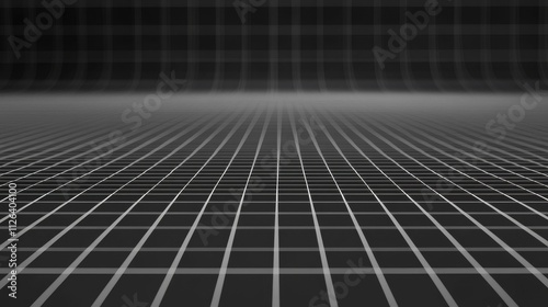 Dark gridded surface, receding perspective, monochrome.