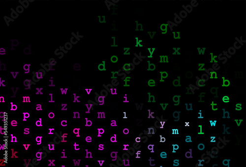 Dark multicolor, rainbow vector background with signs of alphabet.