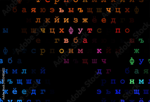 Dark multicolor, rainbow vector layout with latin alphabet.